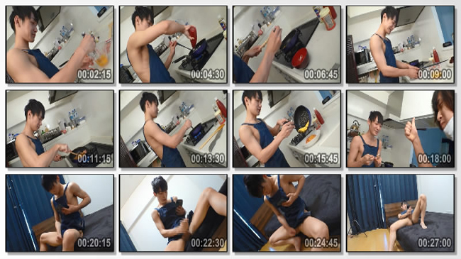 裸エプロンのまま大きくなったチンコをしごいて、溜まった精子を吐き出す!!